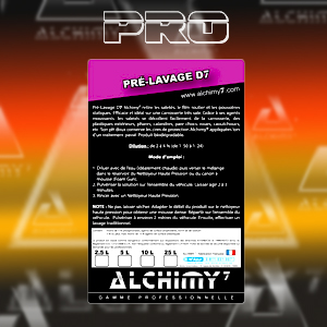 Pré-Lavage D7 Alchimy retire les saletés, le film routier et les poussières statiques.